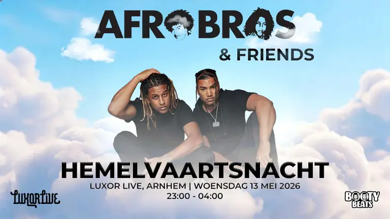Arnhem is misschien niet zo heilig als het lijkt… want Afro Bros komt met Billy Dans, Brace en MC Chaos en verandert Luxor Live op Hemelvaartsnacht in dé plek waar alles samenkomt: energie, vibe en een dansvloer die geen moment stil staat!