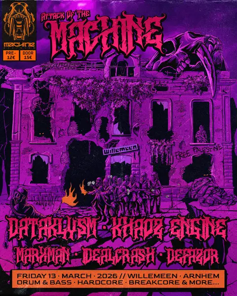 Machine Division returns with a night of resistance. Underground hardcore, industrial, drum & bass, terror, and beyond — a call against war, genocide, and the systems that feed them.