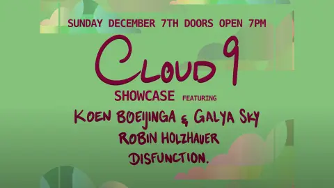 CLOUD9 biedt onafhankelijke artiesten een platform om hun eigen geluid te verkennen, versterken en delen — wat begon als intieme studioproducties, groeit nu uit tot een meeslepende live-ervaring waarin creativiteit en samenwerking centraal staan.