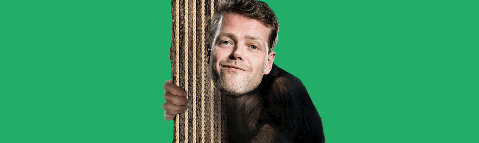Martijn Koning duikt weg van de verantwoordelijkheid. Hij maakt lol. In zijn voorstelling ‘Een aap die geen bananen eet’ gaat hij aan de haal met de krekel, de mier en een aap. Het wordt ontroerend, hilarisch en razendsnel.