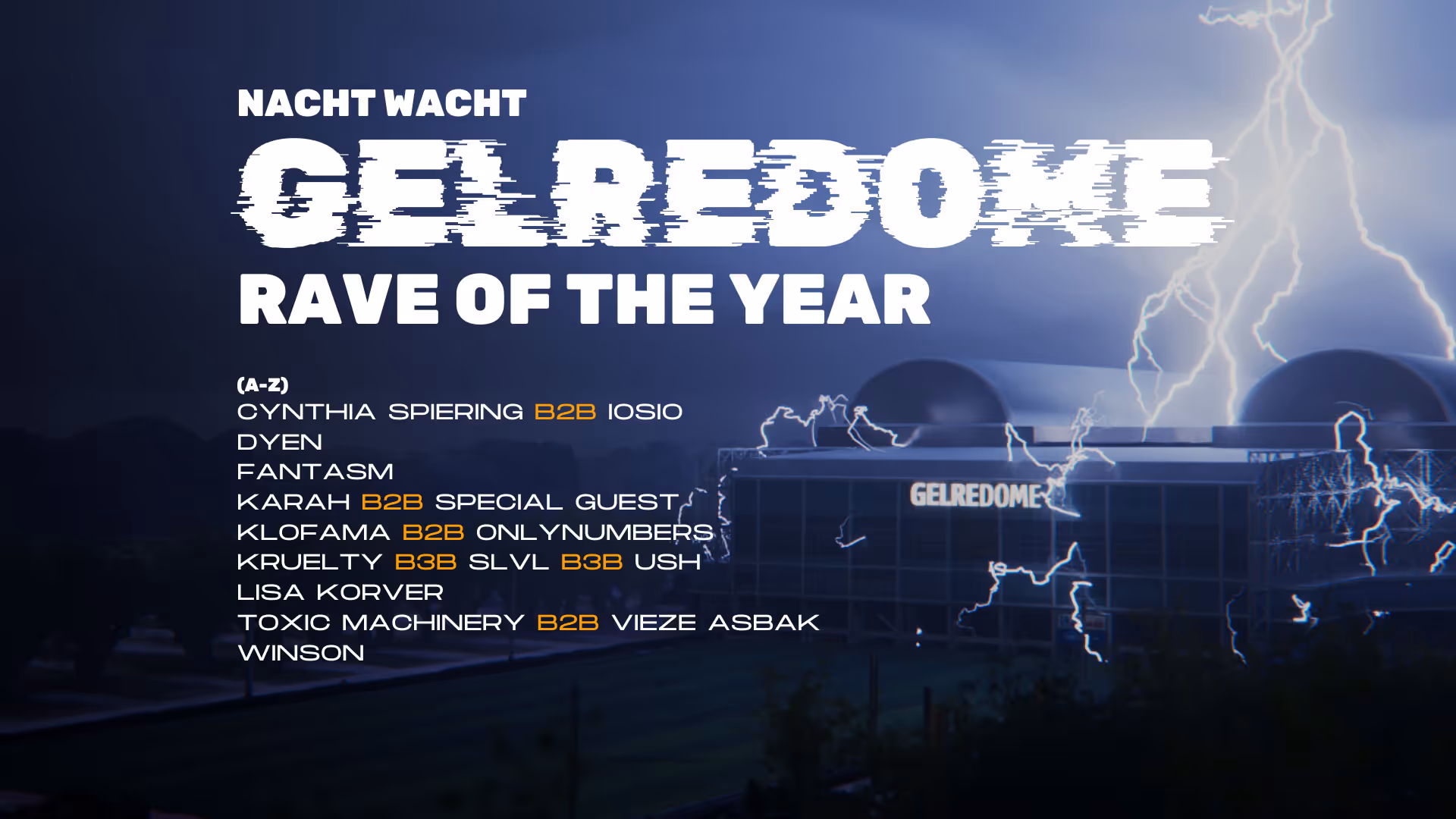 Op 7 maart 2026 presenteert Nachtwacht een evenement dat nu al de boeken in gaat als een hoogtepunt in de dancemuziek. De organisatie kiest GelreDome voor een unieke ‘Rave of the Year’. Bezoekers kunnen een avond vol top artiesten verwachten. De show belooft een mix van energie en een intieme sfeer. De productie is grootschalig, speciaal ontworpen onder meer met lasers, een enorme dansvloer, rookmachines en misschien wel vuurwerk.