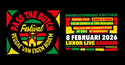 Pass The Dutch is het in Arnhem ontstane, gezellige mini-festival voor de echte Reggae liefhebber. Live muziek, DJ’s, een dik soundsystem en Caribisch eten! De organisatie haalt opnieuw de krenten uit de Nederlandse pap en brengt ze naar Luxor Live. Met Rapha Pico, Colin Enrico & The Healers, Born A Tribe, DJ Ewa en DJ Madbwoy.