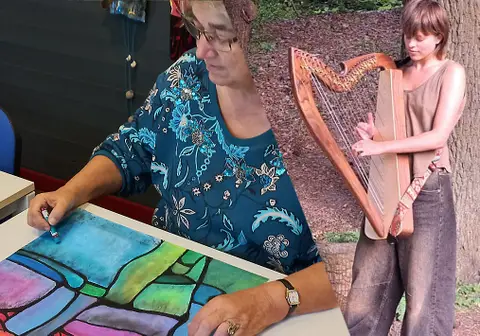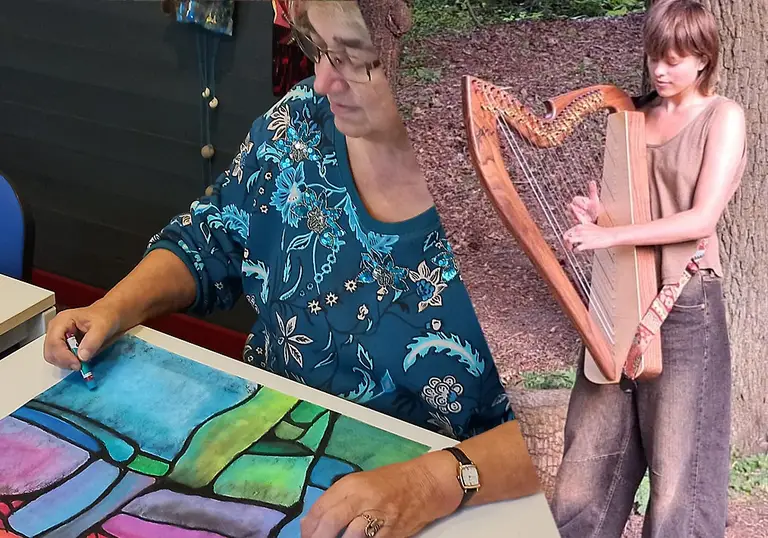 Magda begeleidt mensen bij het doornemen van hun levensloop. Dit doet zij door middel van het schrijven van levensverhalen maar ook met creatieve middelen zoals schilderen, tekenen, scheuren, plakken. Ervaring met schilderen en tekenen is hierbij niet nodig. Magda zal u uitnodigen om op creatieve wijze tot uitdrukking te brengen: ‘Wat zou u nog graag willen doen in uw leven?’ De presentatie wordt omlijst met harpmuziek, gespeeld door Noor Jaasma. Noor begon op achtjarige leeftijd met harp spelen. Momenteel volgt zij de opleiding International Harp Therapy Program, waarin zij wordt opgeleid om de harp therapeutisch in te zetten binnen de zorg. Tijdens het Cultuurcafé zal zij, afgestemd op de presentatie, de luisteraar meenemen in de ervaring van therapeutische harpmuziek. Natuurlijk is er tijdens het Cultuurcafé ook gelegenheid om elkaar te ontmoeten, onder het genot van een kopje koffie of thee. De entree is gratis, een vrijwillige bijdrage is welkom.