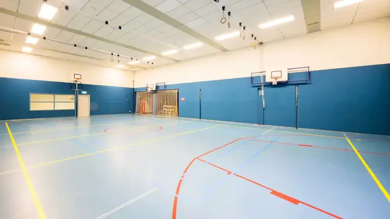 De gymzaal heeft een ruime sportvloer waarop verschillende binnensporten beoefend kunnen worden, waaronder volleybal, badminton en basketbaltrainingen. Door deze veelzijdigheid is de locatie uitermate geschikt voor trainingssessies, clubs, scholen en vrije sportmomenten voor groepen tot ongeveer 50 personen.